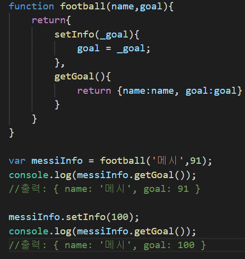 저렇게 setInfo라는 녀석과 getGoral이라는 녀석을 리턴 메소드로 정하고