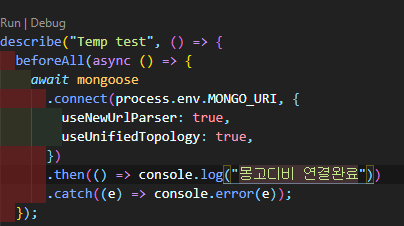 따라서 decribe구문 안에는 beforeAll로 동일하게 db 접근을 해준다.