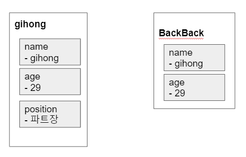 이러한 경우에 backback의 객체는 gihong의 객체 상위에 존재하게 된다.