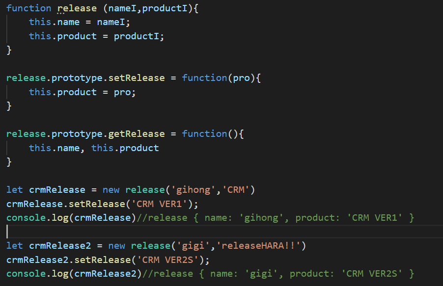 이 경우 crmRelease와 crmRelease2라는 각각의 객체가 생성자의 protoType 안에 있는 같은 set함수를 사용하고 있다.