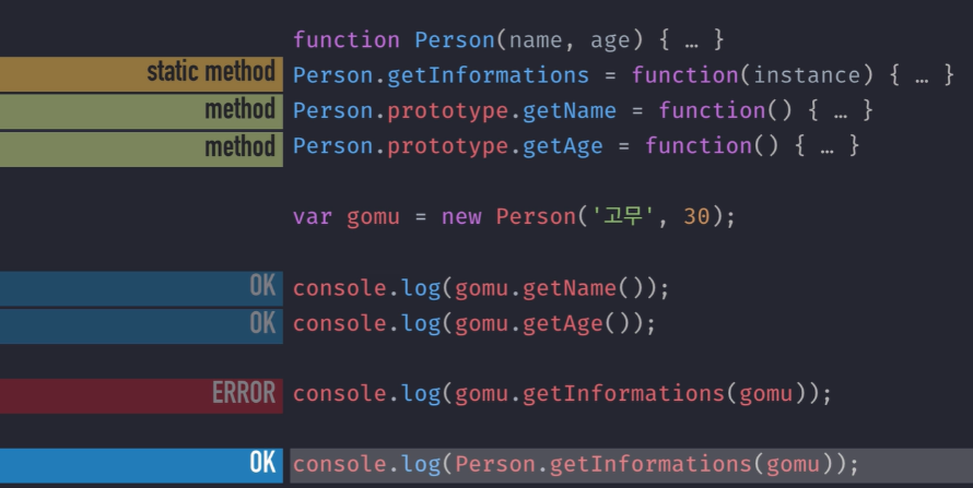 Person에 바로 정의한 getInfo는 인스턴스가 사용할 수 없지만,
