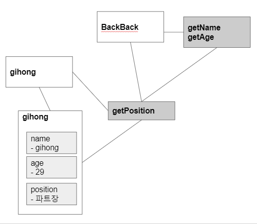 gihong객체는 backback객체에 두고 getPosition 메소드를 정의하면 될 것이다.