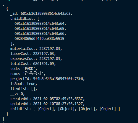 as로 지정한 childList라는 필드에 조건에 부합하는 document들이 들어있다.