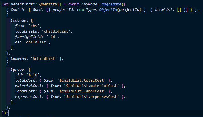 해당 로직은 CBSModel이라는 콜렉션에서 동작하고, JOIN을 위해 cbs라는 콜렉션에 접근한다
