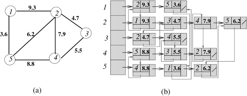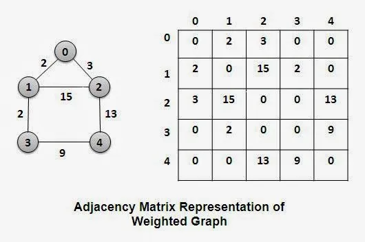 - 첫번째 방법은 2차원 matrix로 표현하여, 하나의 node를 기준으로 인접node를 1로 나타내는 법이다. weight가 있다면 숫자로 나타낸다.