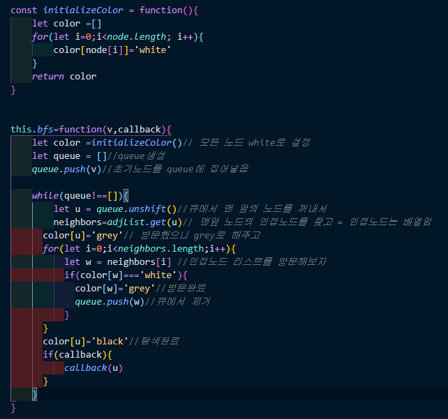 - 방문예정인 노드를 queue에 넣고 해당 노드를 방문하면 인접 노드들을 탐색한다.