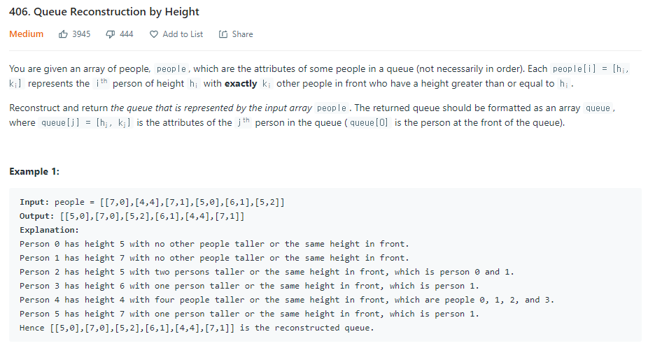 [Queue] Queue Reconstruction by Height