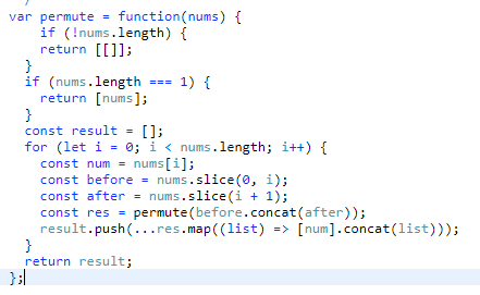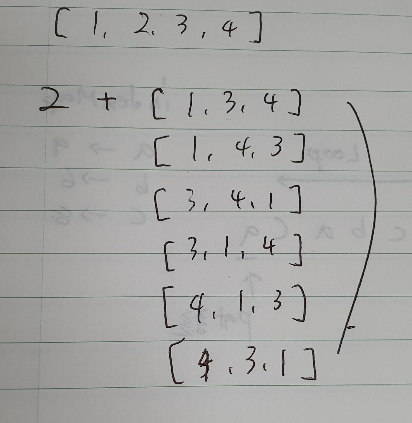 이렇게 하는 이유는, 나머지를 가지고 만든 순열의 경우의 수에 순회 차례가 된 원소만 concat으로 붙여주면