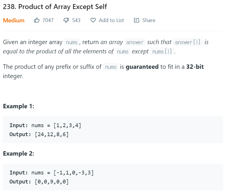 자기 자신을 제외한 나머지 원소들의 곱을, 새로운 배열의 같은위치 원소로 설정하라는 문제이다