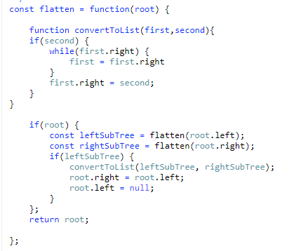 root가 주어지면, root의 left와 right를 flat하게 만든 후, null- root - left subtree - right subtree 형태로 붙이면된다.