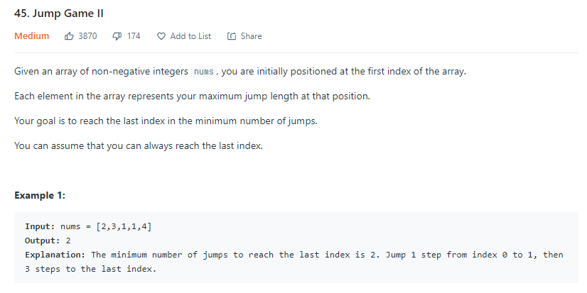 예컨데 문제에서 [ 2, 3, 1, 1, 4 ]는 index=0->1->4 순서로 last index에 도착할 수 있다.