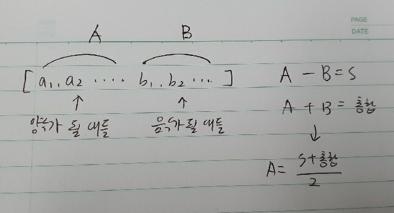 따라서 A그룹은 우측 연산에 의해 (S+sum)/2로 표현된다