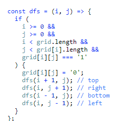 이후 dfs를 사용하여 순회를 시작한다. dfs로직에 의해 인접 1이 모두 0으로 바뀌면 순회가 종료된다.