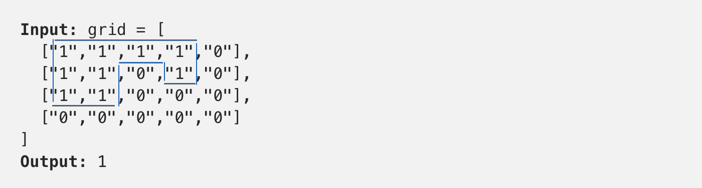 1을 섬, 0을 물이라고 할때 섬의 갯수를 구하라는 문제이다