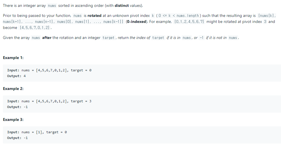일반적인 binary search 문제대로 오름차순으로 정렬되어 있다면 그냥 쪼개면 되지만 얘는 특정 기준으로 pivot되어있다.