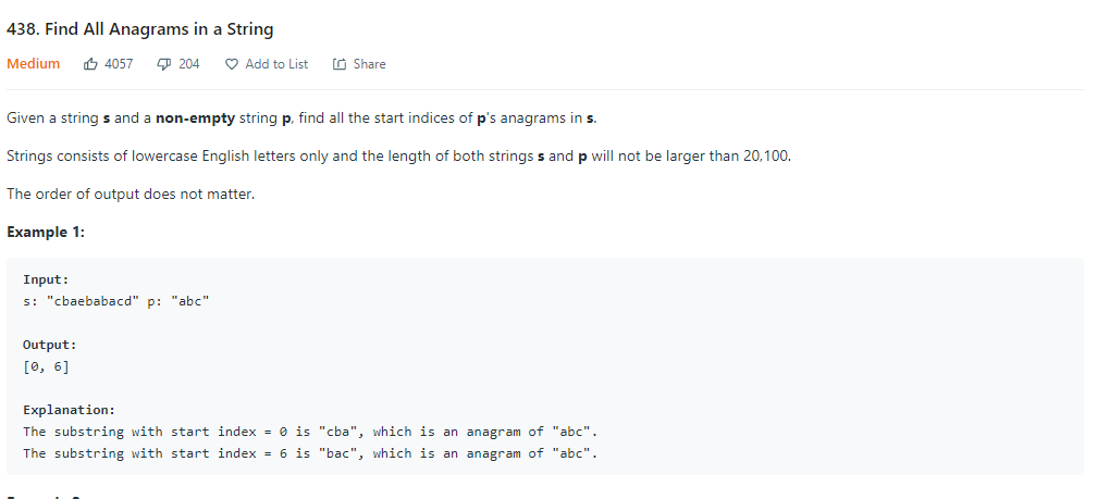 s와 p를 input으로 주는데, index=n에서 끊으면 p의 anagrams으로만 구성된 s의 부분집합을 찾으라는 문제이다