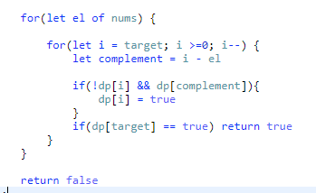 nums의 각 element에 대해서, dp[complement]가 true라면 해당 dp[i]는 true이다