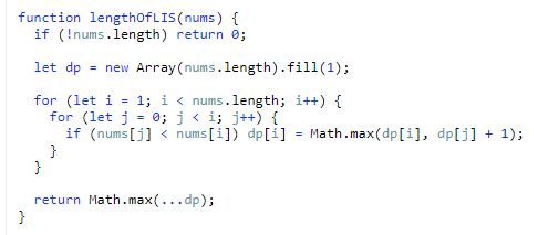 이때 dp [ i ]는 nums의 i번째 원소의 longest Increasing Subsquence이다.