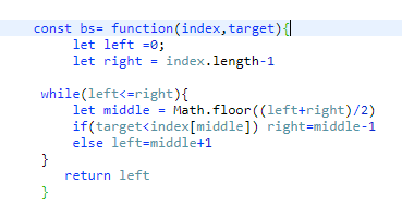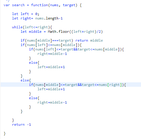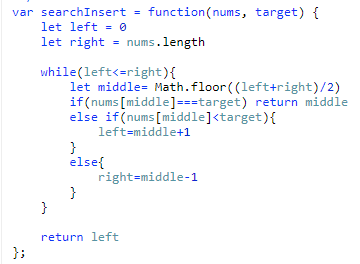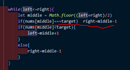 결과적으로 target을 찾든, 찾지 않든간에 target이 nums[middle]의 값보다 클때만 left를 옮겨주고, 나머지는 right를 앞으로 끌어오면 된다
