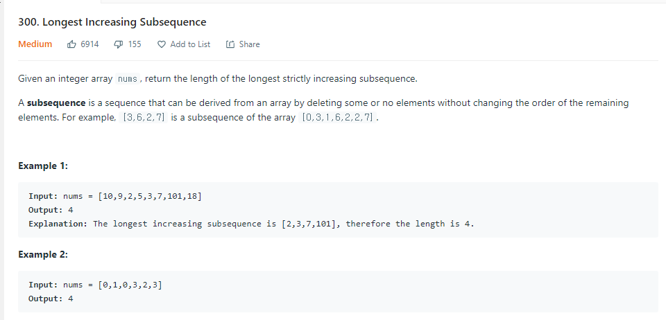 예시5 . 300 Longest Increasing Subsequence