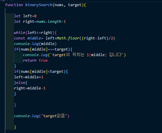 사실 이 문제는 indexOf 메소드를 이용해 한 줄로 처리할 수도 있지만, 굳이 binary search를 적용한다면 이렇다.