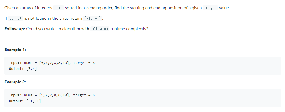 예시2. 34 Find First and Last Position of Element in Sorted Array