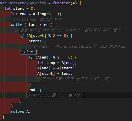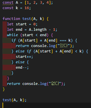 2) A포인터와 B포인터의 초깃값은 각각 0과 Array.length-1로 설정한다