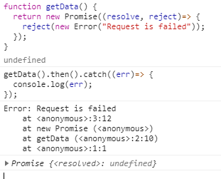 그리고 catch에 도달하기 위해선 반드시 실패하는 then이 존재해야 한다.