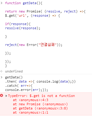 콘솔이라 get을 수행하지는 못하지만, 저렇게 Promise 객체를 소환하고