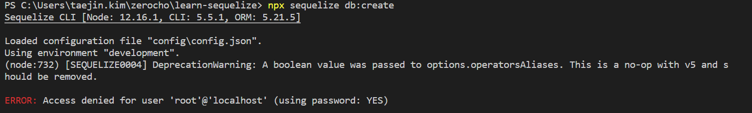 원래는 위에처럼 설정하고 Sequelize db:create를 하면