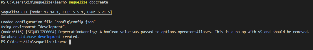 그리고 sequelize를 실행하면, config.json안에있는 config.xxx 들을 읽어온다