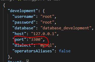 저기 포트설정 객체에서 development 파트만 사용한다고 했으니, 우리는 development의 설정만 DB와 동일하게 바꿔주면된다.