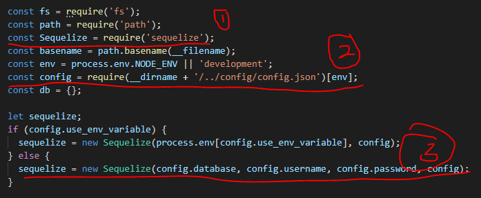 우리가 주목해야 할 부분 첫째는 저기 1번 Sequelize부분.
