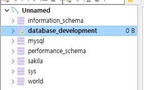 "database"이름을 가지고 있는 스키마가 하나 생성된다